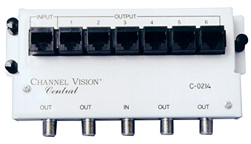 The Channel Vision C-0214 is a versatile service module designed to integrate both telephone and RF (Radio Frequency) signals within a structured wiring system. This module provides distribution for up to six telephone outlets, each supporting up to four lines, and includes a 4-way RF splitter for CATV distribution. It is compliant with TIA/EIA-568A and TIA 570 standards and is compatible with CAT 5e cabling.