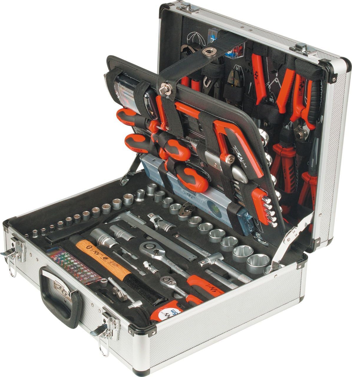 - Szczypce: 8 x Pliers (general assortment), 1 x Cable Lug Crimping/Stripping Pliers, 1 x Combination Pliers, 1 x Diagonal Cutting Pliers, 1 x Long Nose Pliers, 1 x Water Pump Pliers, 1 x End Cutting Pliers, 1 x Circlip Pliers.