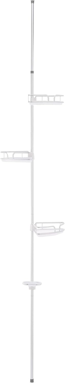 The Amazon Basics Tension Pole Corner Shower Caddy provides convenient storage for your shower essentials. Featuring a tension-mount design, it installs easily without tools and offers adjustable shelves to fit various bottle sizes. Its aluminum construction ensures durability and rust resistance.