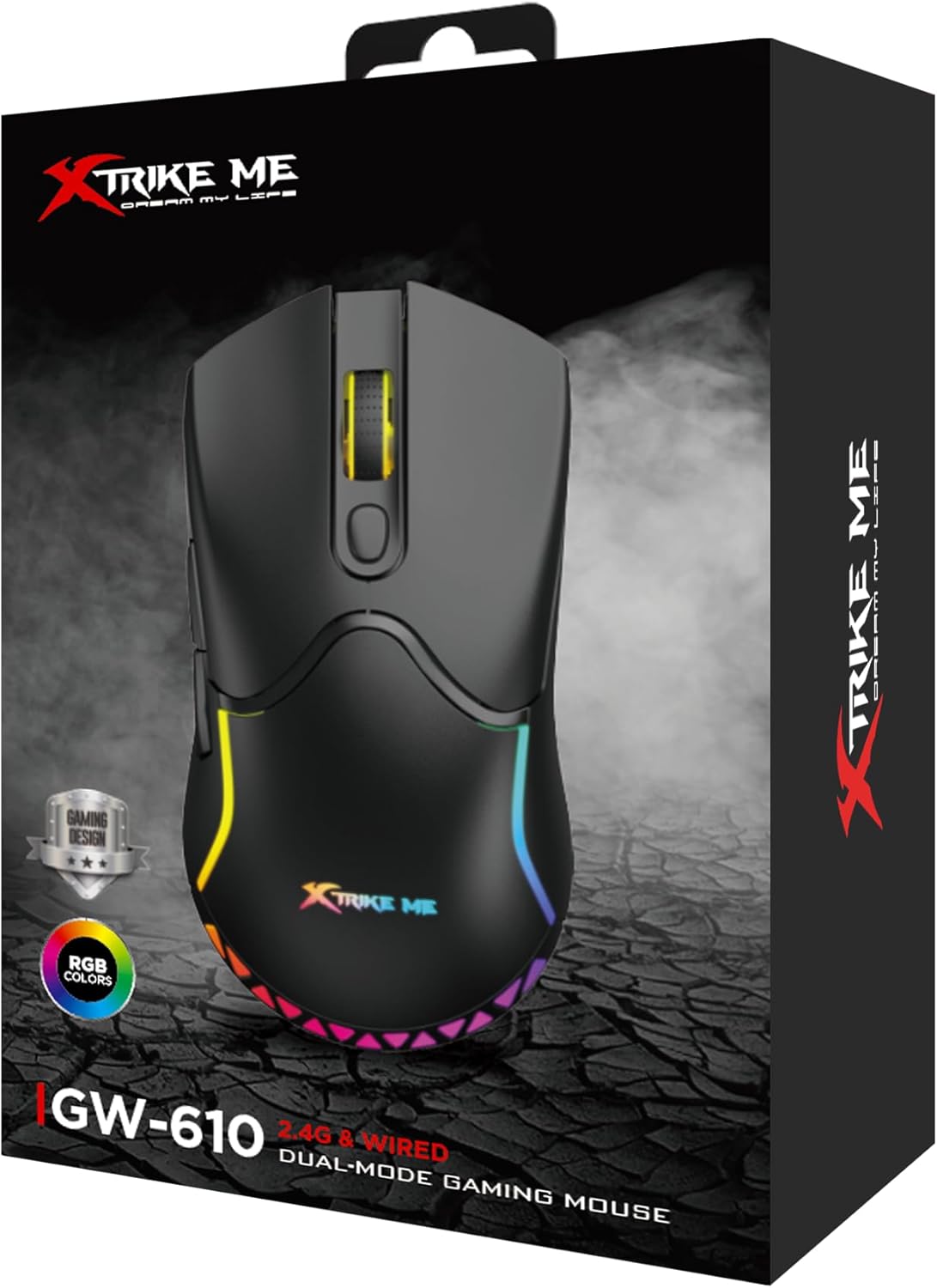 Thank you for choosing the Xtrike Me GW-610 Gaming Mouse. This manual provides detailed instructions for setting up, operating, and maintaining your new gaming mouse. The GW-610 offers both wired and 2.4G wireless connectivity, customizable RGB lighting, and a high-precision optical sensor with adjustable DPI settings, designed for an enhanced gaming experience.