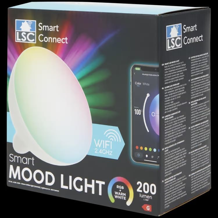 The Generico LSC Smart Connect 4.5-watt Mood Lamp is an intelligent lighting solution that creates a cozy and relaxing atmosphere in any environment. This high-quality LED lamp offers soft, adjustable light, perfect for setting the desired mood. Thanks to smart connectivity, you can easily control the light intensity and color via an app on your smartphone or smart device. This lamp is ideal for the bedroom, living room, or any other room where you desire soft, relaxing accent lighting. With a power consumption of only 4.5 watts, it is also an ecological and economical option for lighting your home. Enjoy a personalized, high-quality lighting experience with the Generico LSC Smart Connect Mood Lamp.