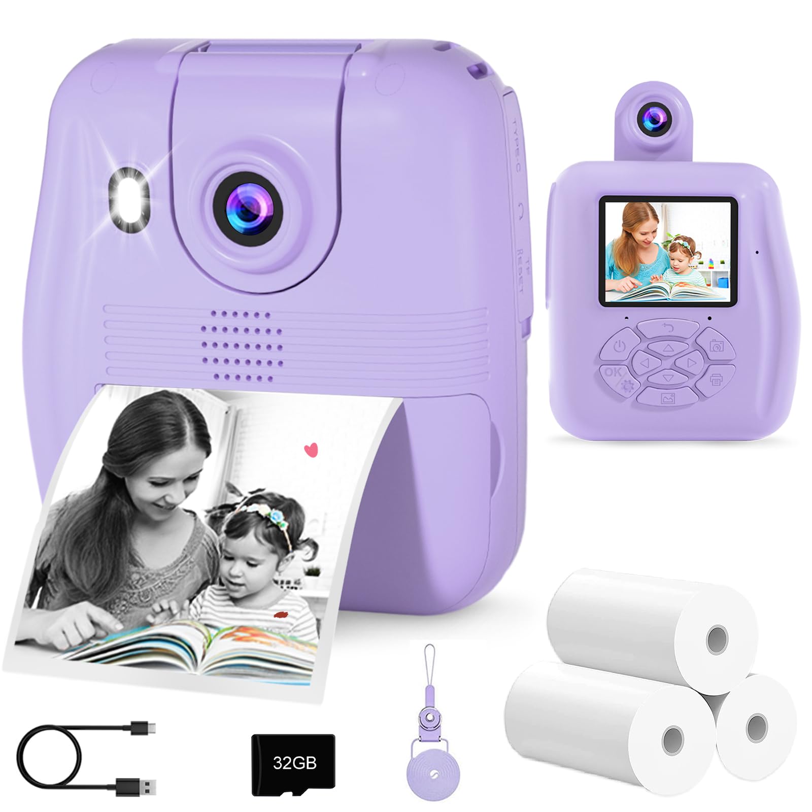 Image: The GKTZ Kids Instant Print Camera P210, a compact purple digital camera designed for children.